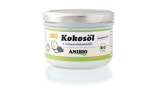 Aceite de coco ecológico para perros con aceite de comino negro. El aceite de coco para perros Bio de Anibio contiene un 95% de aceite de coco y un 5% de aceite de comino negro 100% orgánicos y prensados en frío. Por su contenido en ácido laúrico, el aceite de coco es un antiparasitario natural muy eficaz.